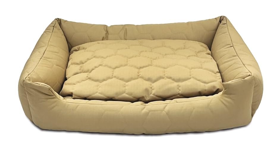 SITSNOOZE Plush Lounger Dog Bed and Bed for Cats & Furniture | Bed for Dogs & Cats | Lounger Dog Bed | Water Resistant Indoor and Outdoor Lounger Bed | Colour: Beige Quilted|Size :S
