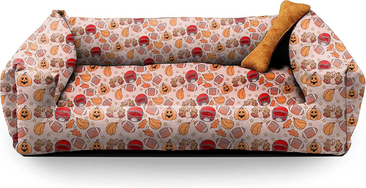 SITSNOOZE Plush Lounger Dog Bed and Cat Bed | Pet Bed for Dogs & Cats | Lounger Dog Bed | Water Resistant Indoor and Outdoor Lounger Bed | Colour: Cream Printed Size : S