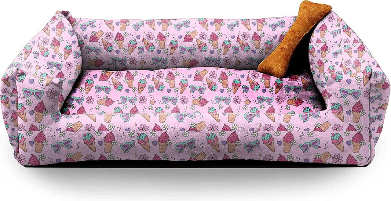 SITSNOOZE Plush Lounger Dog Bed and Cat Bed | Pet Bed for Dogs & Cats | Lounger Dog Bed | Water Resistant Indoor and Outdoor Lounger Bed | Colour: Pink with Ice-Cream Print Size : S