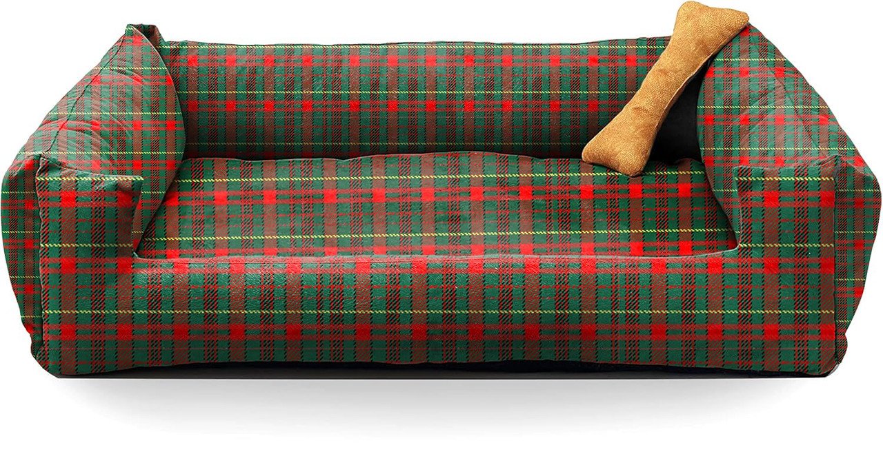 SITSNOOZE Rectangular Plush Lounger Dog and Cat Bed, Orthopedic Dog Bed for Sleeping, Water Resistant Indoor and Outdoor Pet Bed, Printed Washable Beds (Dark Green, M)